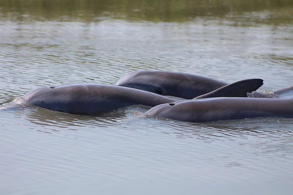 Hot and humid on land (high 80s-90s°F), but breezy on the water. Afternoon thunderstorms common—morning tours avoid the worst heat and weather. Water warm enough for swimming if you end up in it. Dolphins abundant, including mothers with calves. Peak tourist season means sold-out tours.